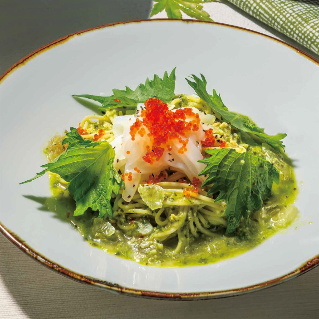 ・紋甲いかと大葉鰹出汁の冷製ジェノベーゼパスタ 税込1,529円