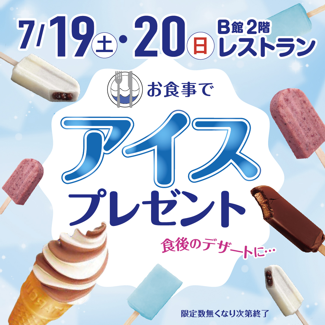 7/19(土)・20(日)の2日間、ランチタイムのお食事ご利用のお客様へ